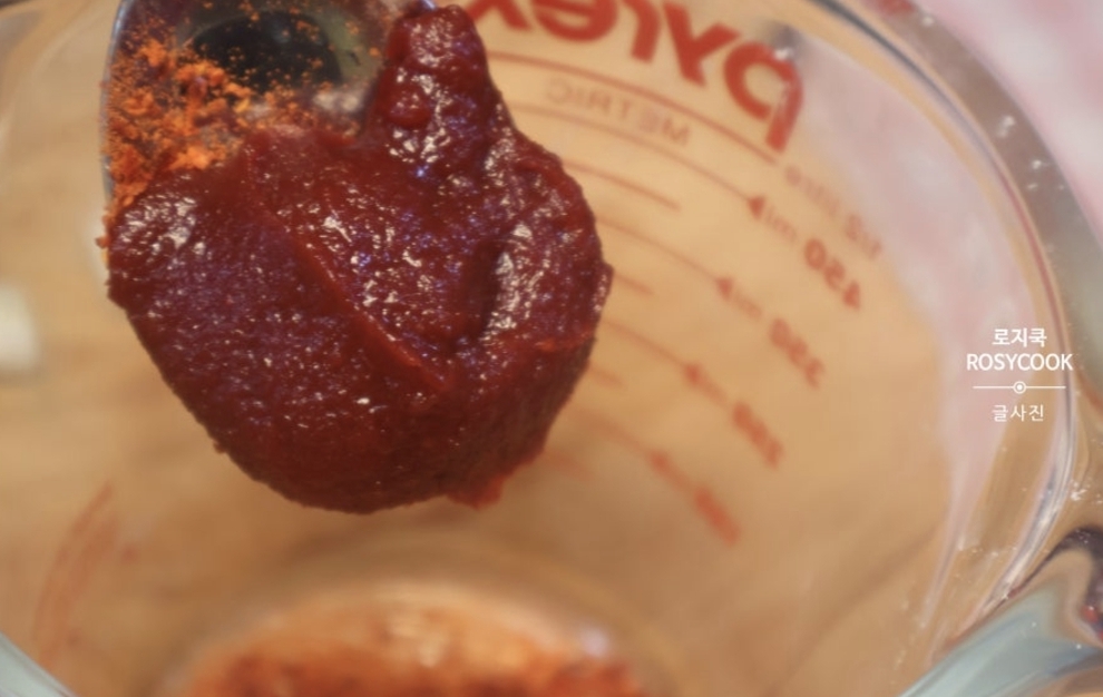 3. 고춧가루, 고추장을 넣고, 끓고 있는 육수 1국자를 섞어 풀어줍니다.