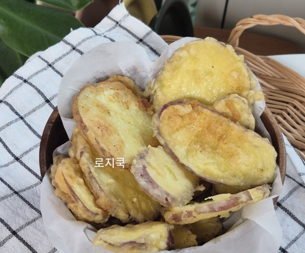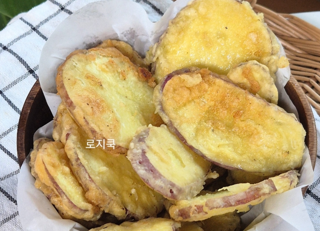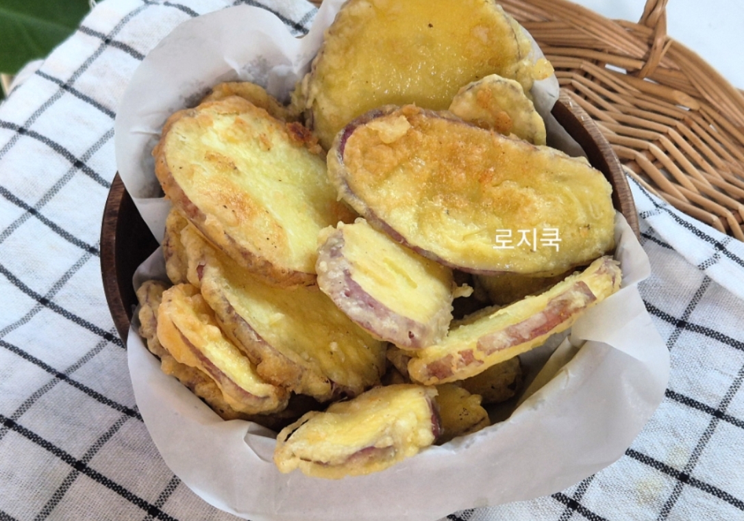 고구마튀김은 한 번에 많은 양을 넣지 말고, 적당히 나눠 튀겨야 바삭함이 오래갑니다.