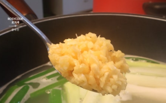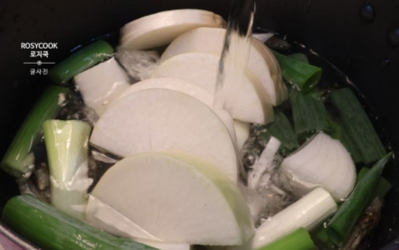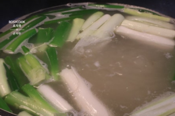 9. 끓어오르면, 대파를 큼직큼직하게 썬 후, 넣어줍니다.