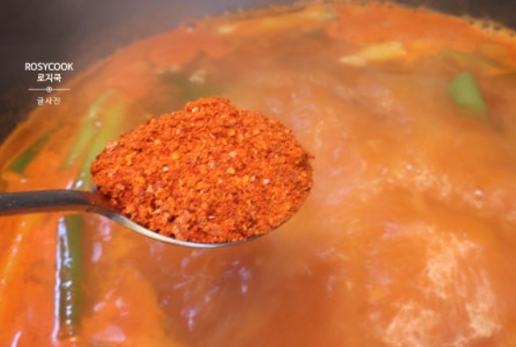 11. 진간장과 고춧가루를 넣어줍니다.