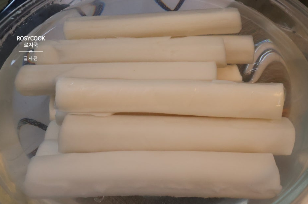 1. 먼저 가래떡을 물에 담가서 불려줍니다. 육수를 준비하는 동안 불려주시면 됩니다.