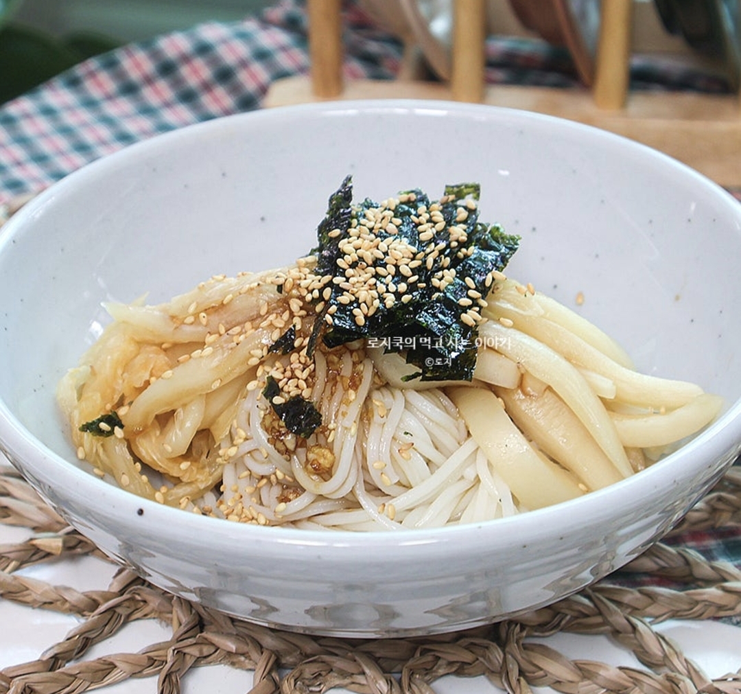 지금까지 간장 비빔국수 황금레시피 양념장 소개해 봤습니다. 슥슥 비벼서 드시면 됩니다. 달큼하면서도 적당히 짭조롬한 간장국수 양념장에 아삭한 묵은지가 씹히니 잘 어우러집니다.