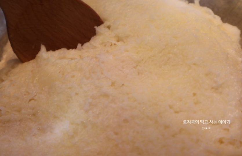 5. 전분의 양은 반죽하면서 조절하시면 됩니다. 질척이지 않게 뭉쳐질 정도로 넣어줍니다.
