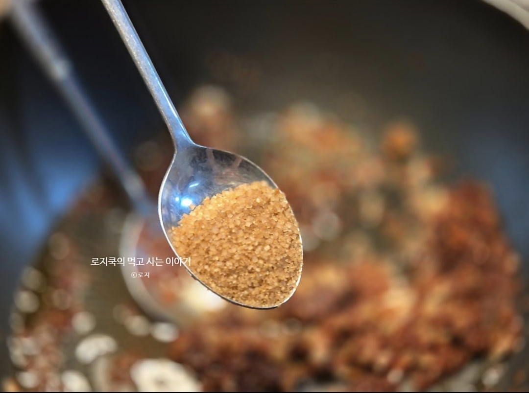 5. 설탕 1/2 큰 술, 고추장 1 큰 술을 넣어줍니다.