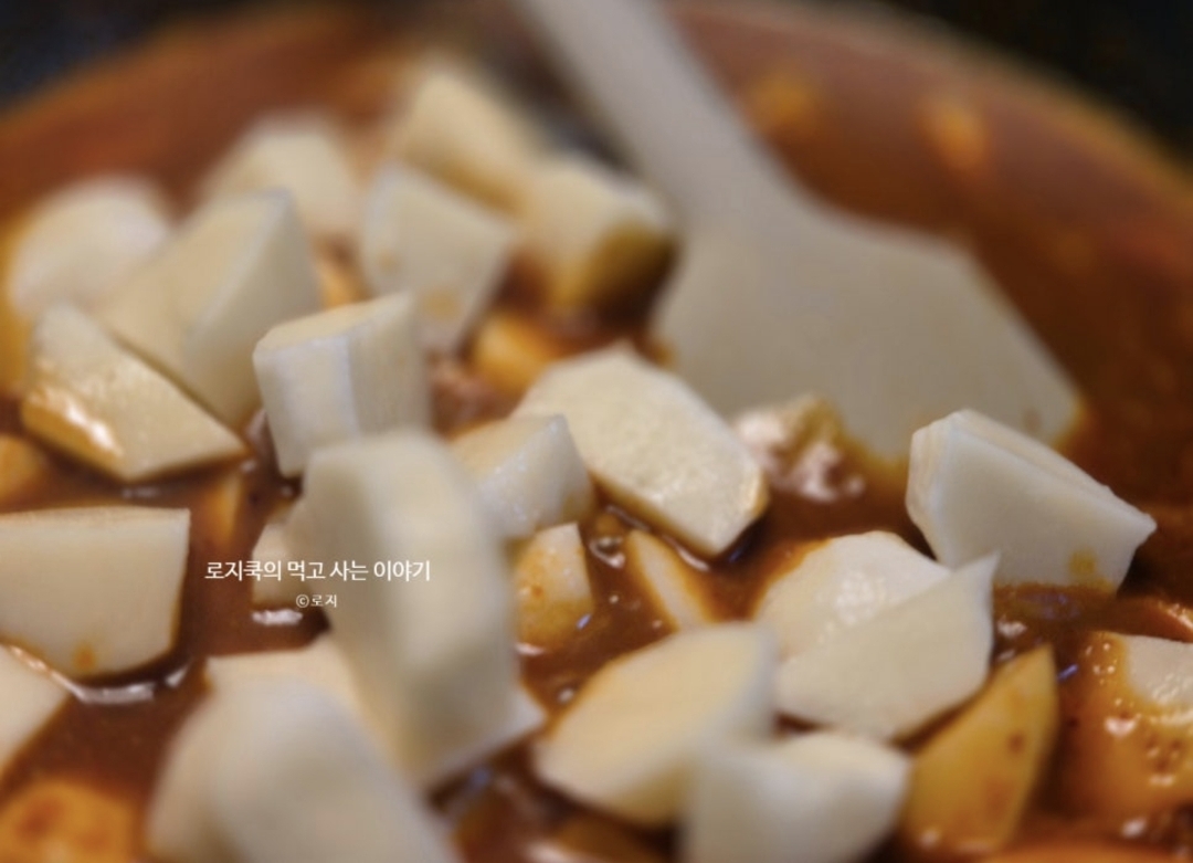 8. 고추장 양념 소스가 걸쭉해지고 양념이 감자에 밸 때까지 조려줍니다.