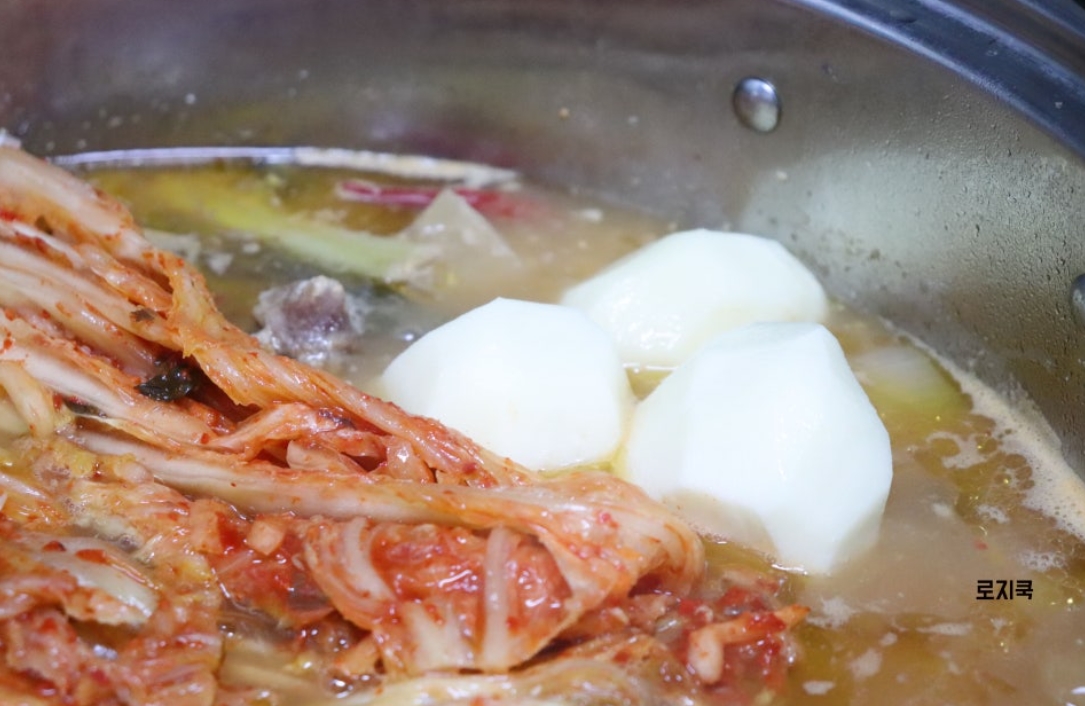11. 감자 3개와 속을 정리하고 썰어둔 김치를 넣어줍니다.