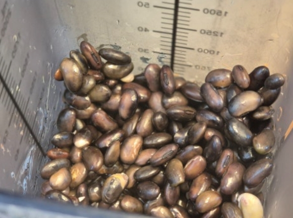 7. 삶은 콩을 넣고 물 1350ml를 부어줍니다.