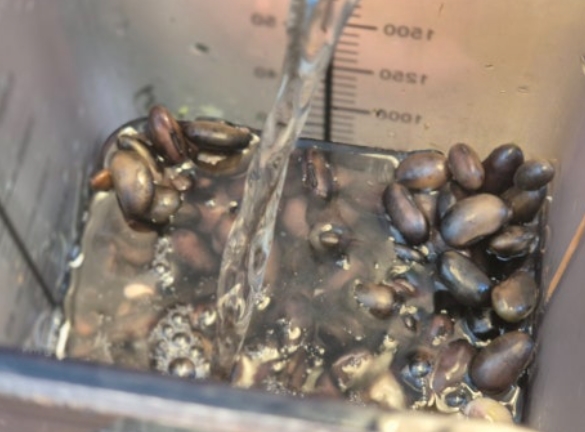 1. 서리태 콩 2컵을 흐르는 물에서 깨끗하게 세척한 후, 12시간 정도 불려줍니다. 전날에 미리 불려두시면 됩니다.