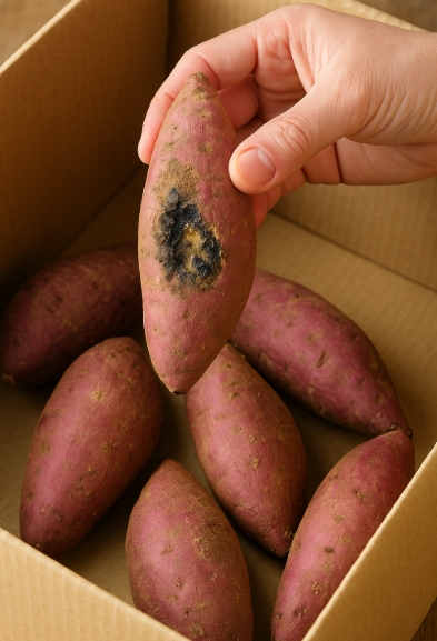 하나라도 있으면 즉시 제거해야 다른 고구마가 함께 상하는 것을 막을 수 있습니다.