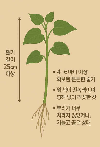 - 4~6마디 이상 확보된 튼튼한 줄기