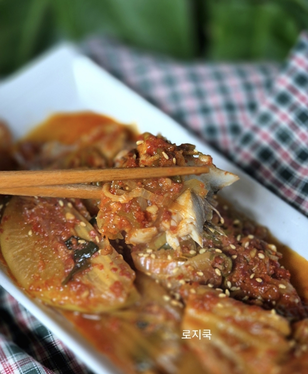 김치와 무를 곁들여 같이 먹으면, 진짜 밥이 술술 넘어가요.
