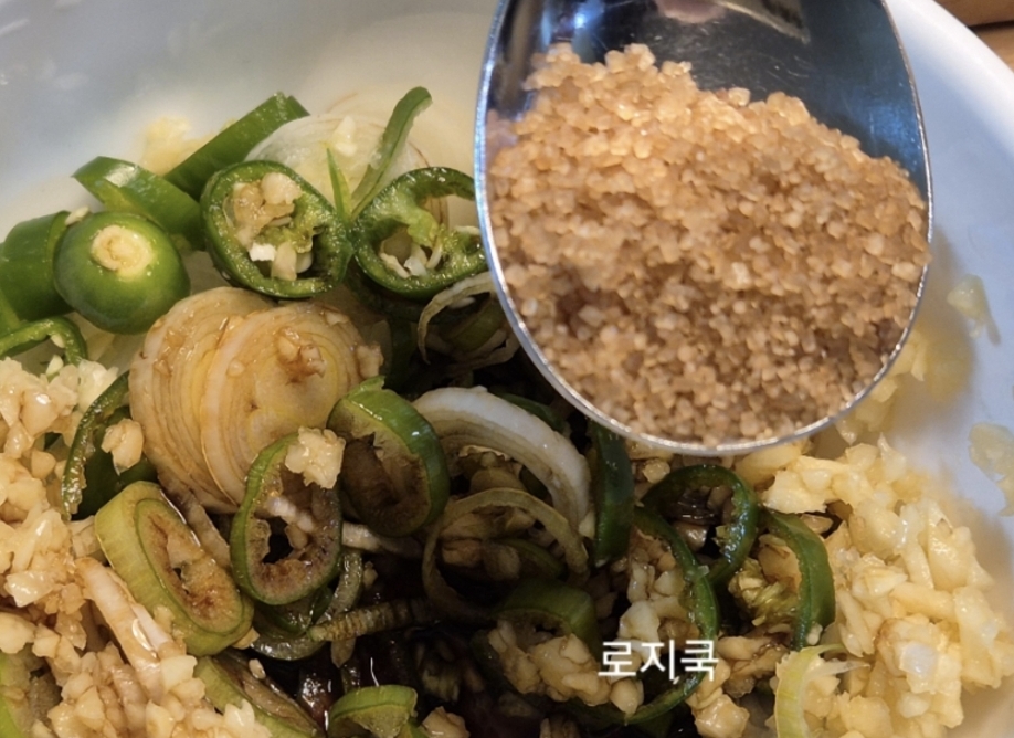 여기에 간 마늘 1 큰 술도 꼭 넣어주세요. 감칠맛이 확 달라집니다!