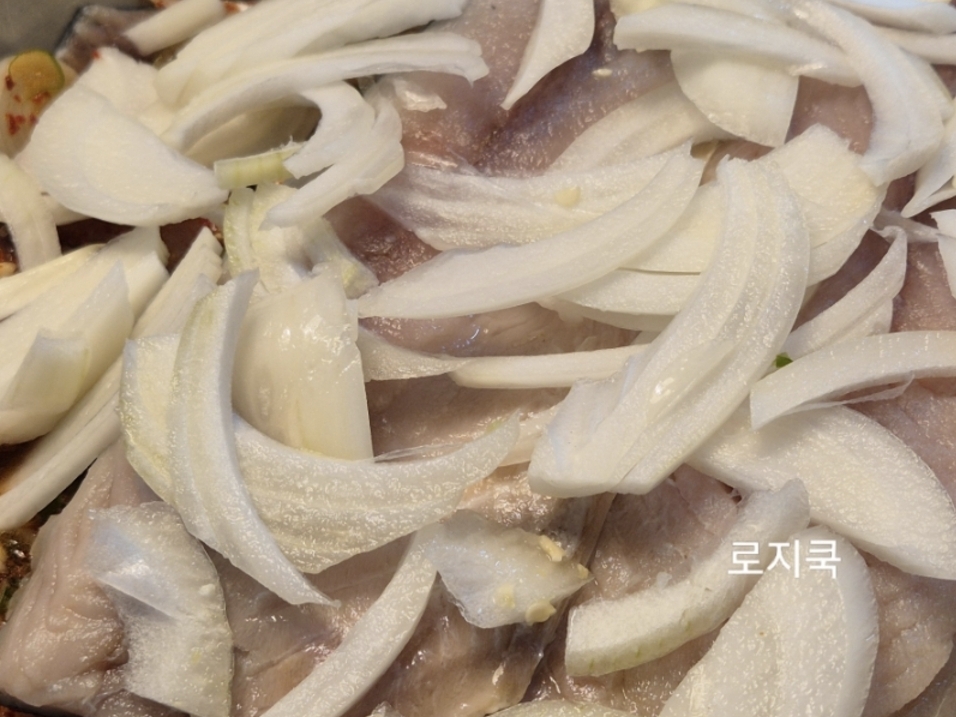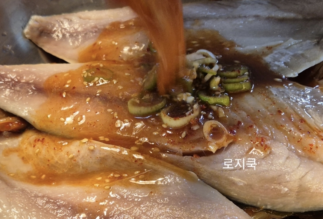 3. 만들어둔 양념장을 고등어 위에 골고루 부어주세요.