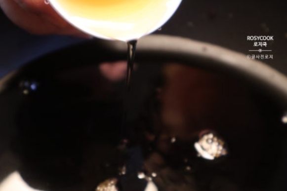 9. 끓인 간장을 어느 정도 식힌 후, 부어줍니다.