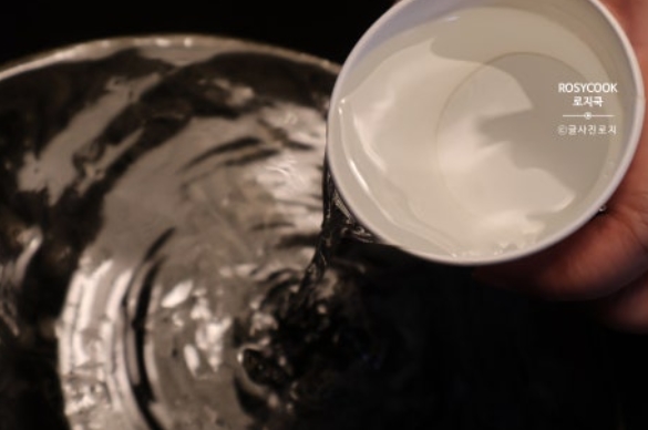 6. 식초와 소주를 부어줍니다.