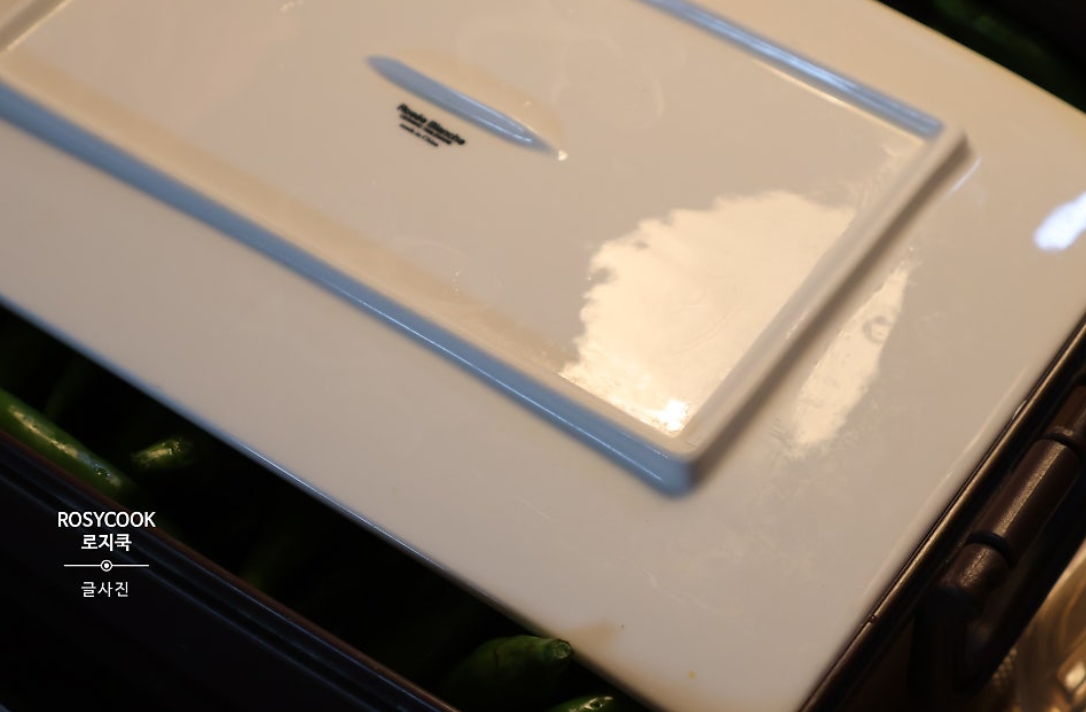10. 위쪽 부분도 잘 담기도록 그릇으로 눌러준 후, 뚜껑을 덮어줍니다.
