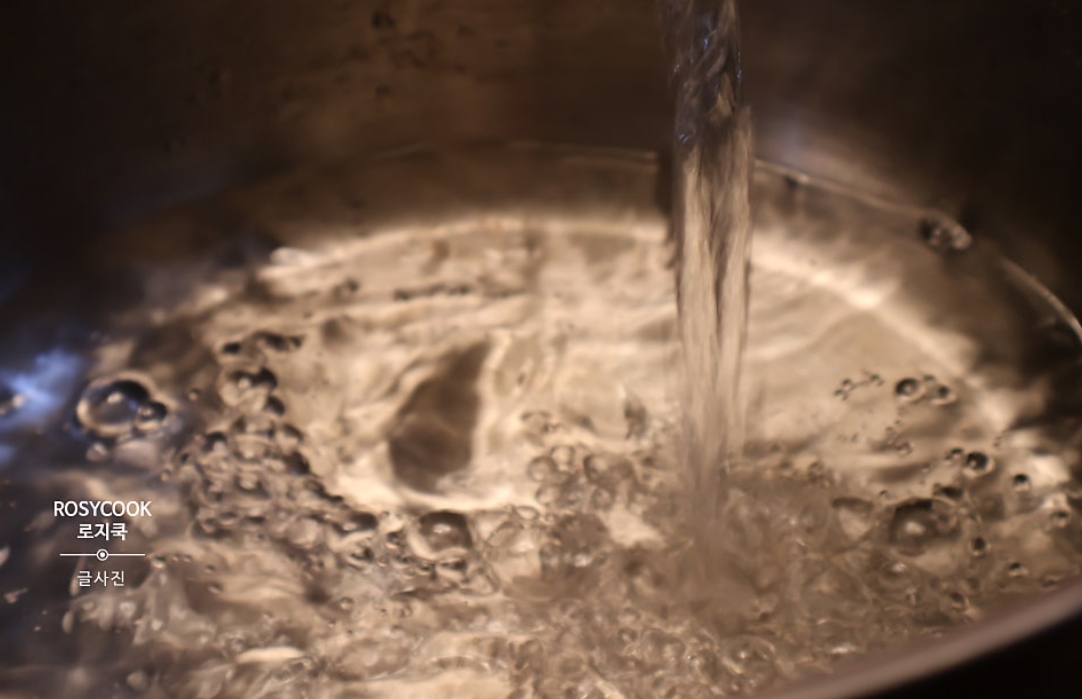 7. 소금이 녹도록 잘 저어줍니다. 펄펄 끓어오를 때까지 끓여줍니다.
