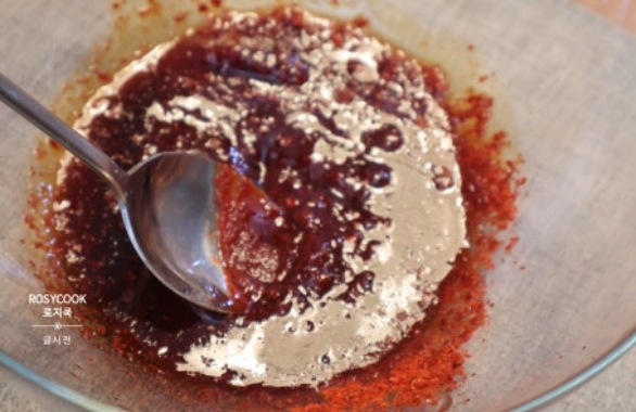 16.고추장을 넣고 잘 섞어줍니다.