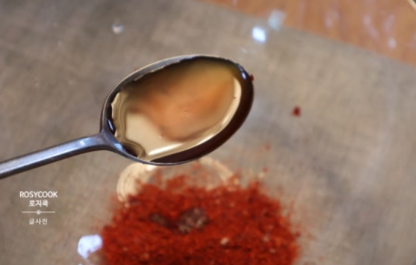 14. 고춧가루와 매실청을 넣어줍니다.