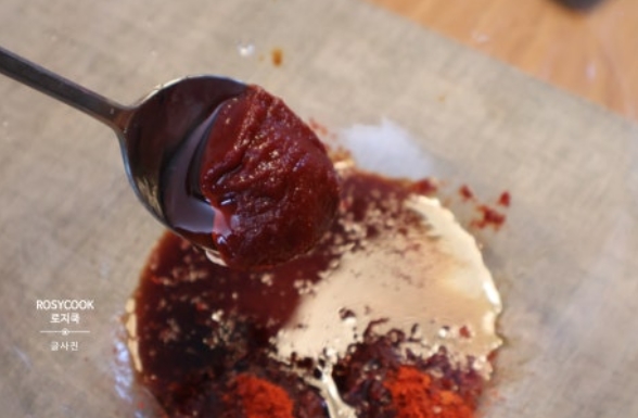 16.고추장을 넣고 잘 섞어줍니다.