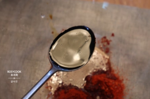 14. 고춧가루와 매실청을 넣어줍니다.