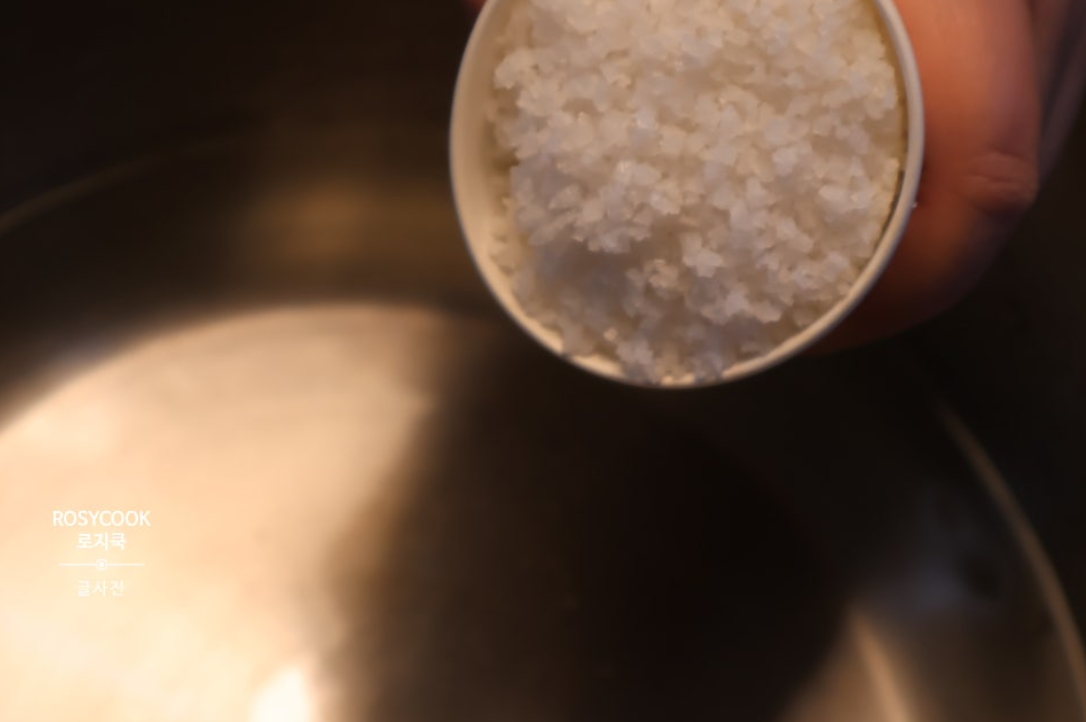 6. 굵은소금을 넣어주세요.