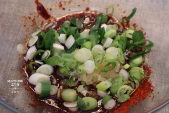 17. 간 마늘과 대파를 넣어줍니다.