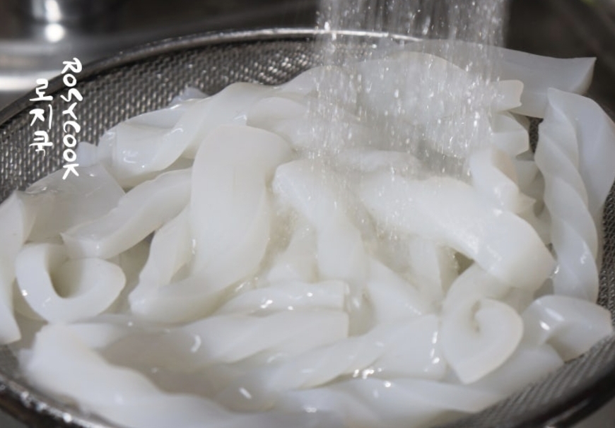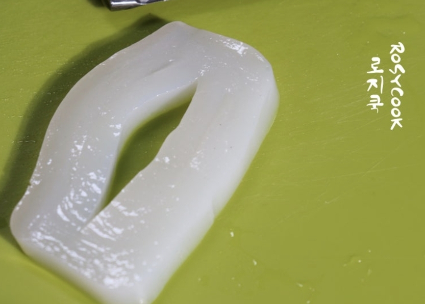 곤약은 흐르는 물에 씻은 후 0.5~0.7cm 두께로 썰어주세요.