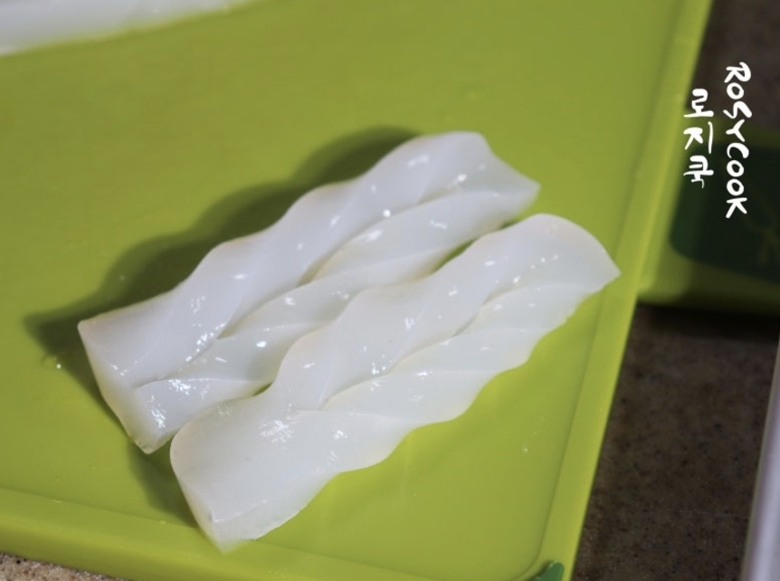 칼집을 내서 꽈배기 모양으로 만들면 양념도 잘 배고 예쁘기까지 해요. 이 과정이 귀찮다면 큐브 썰기 해서 조려주셔도 됩니다.