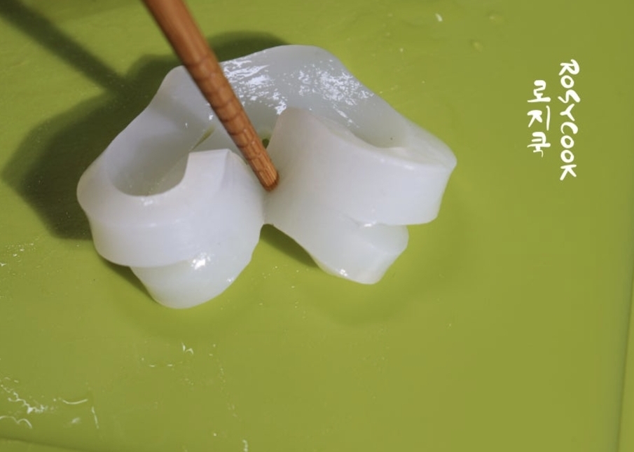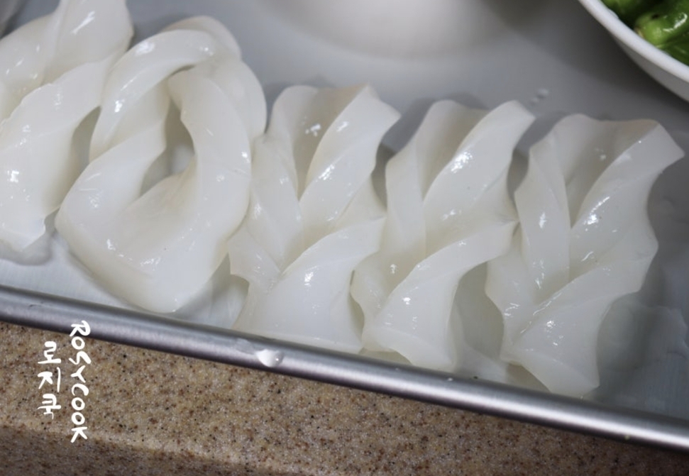 칼집을 내서 꽈배기 모양으로 만들면 양념도 잘 배고 예쁘기까지 해요. 이 과정이 귀찮다면 큐브 썰기 해서 조려주셔도 됩니다.