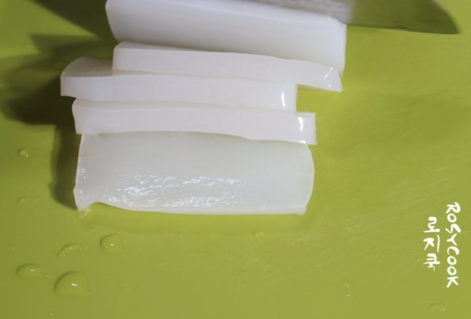 곤약은 흐르는 물에 씻은 후 0.5~0.7cm 두께로 썰어주세요.
