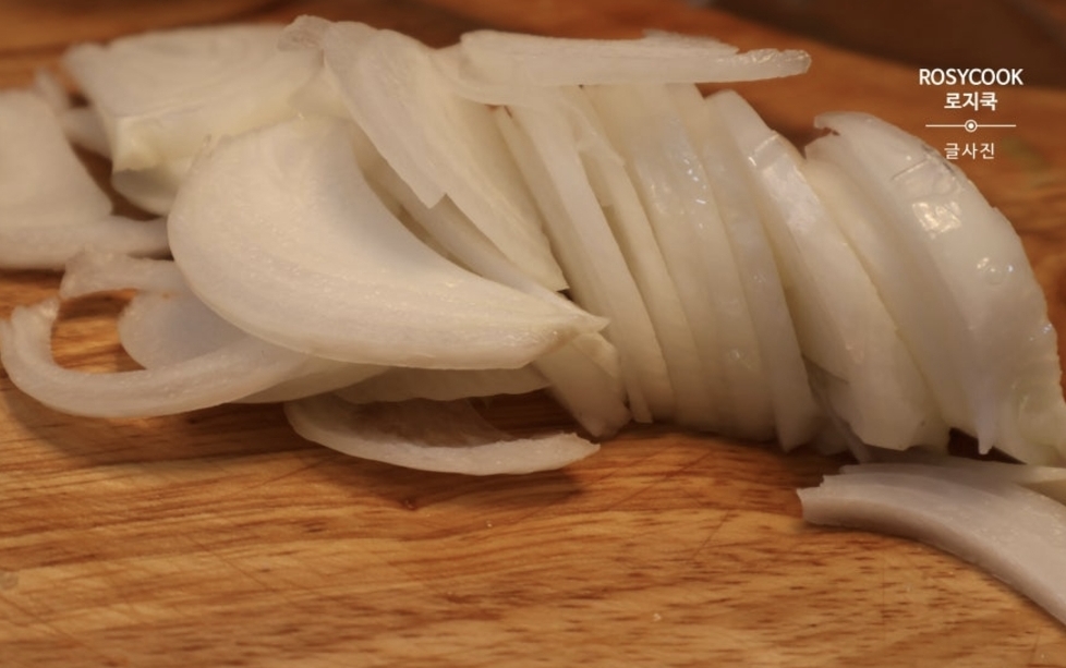 양파는 얇게 채 썰고, 대파는 송송 썰어주세요.