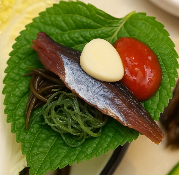 고소하게 구운 김 한 장 위에 과메기를 올리고 초장이나 마늘 한 점만 곁들이면, 과메기 특유의 풍미가 김의 구수함과 만나 훨씬 깊은 맛을 냅니다. 세트로 싸먹는 느낌이라 부담 없이 즐길 수 있고, 특히 과메기 초보자들에게 “이렇게 먹으면 실패 없다”는 평가를 받는 조합입니다.