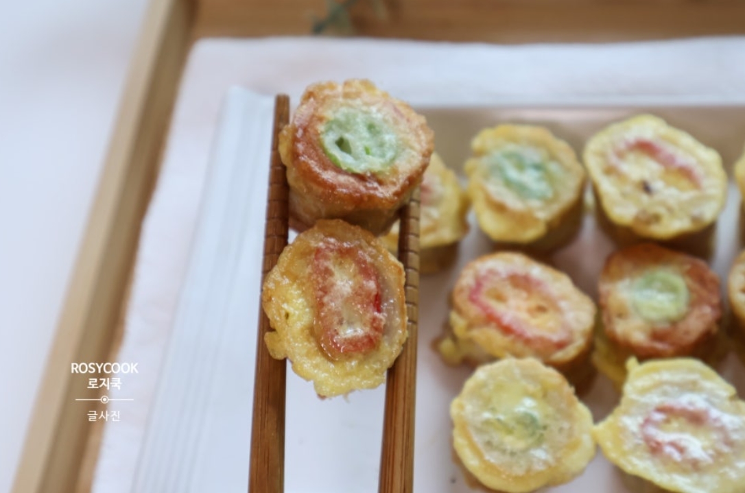 씹히는 식감도 좋고 손쉽게 만들어서 먹을 수 있기 때문입니다. 대파, 고추 등을 사용해서 고추전 대파전으로 만들어봤습니다. 넣는 재료에 따라 맛이 달라서 색다른 맛이 있습니다. 그럼 쫄깃하게 씹히면서도 아삭한 맛이 좋은 구멍 어묵전 만들기 시작해 보겠습니다.