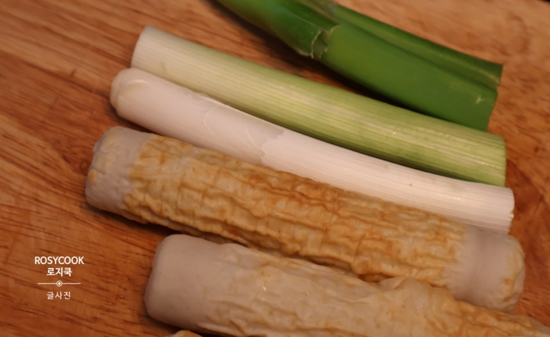 1. 먼저 대파를 어묵 길이에 맞게 썰어줍니다.