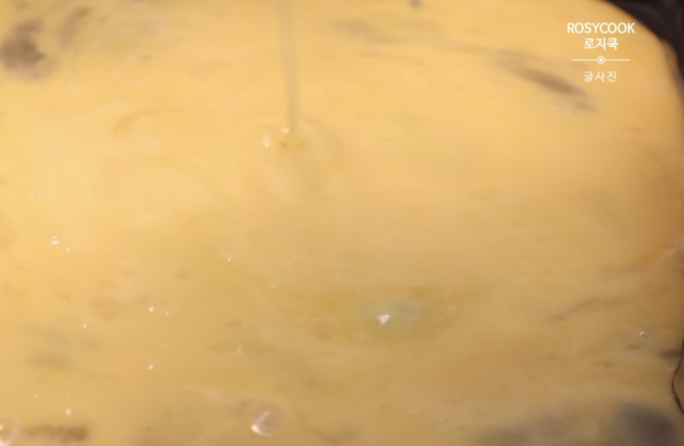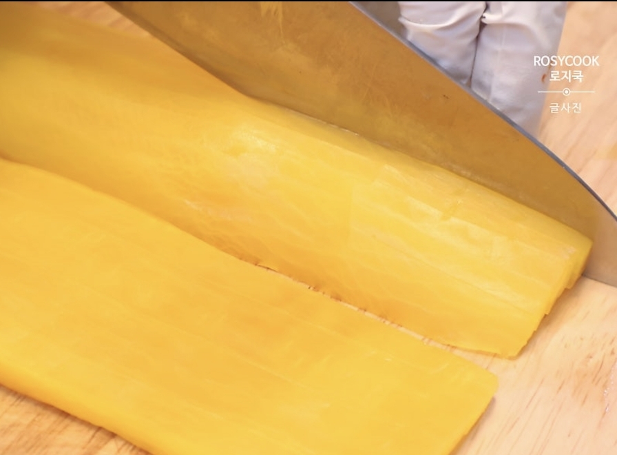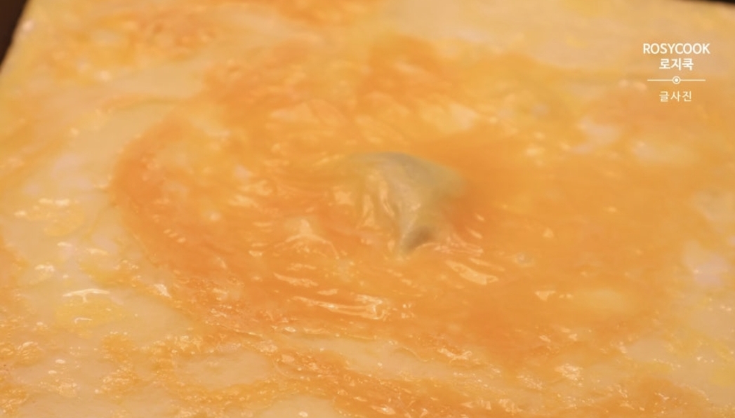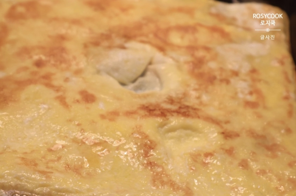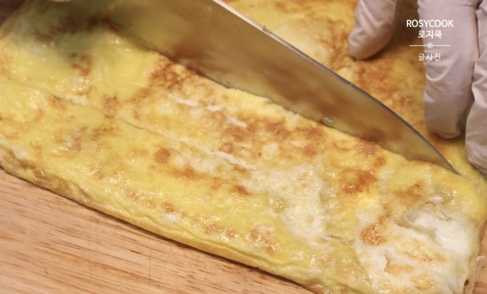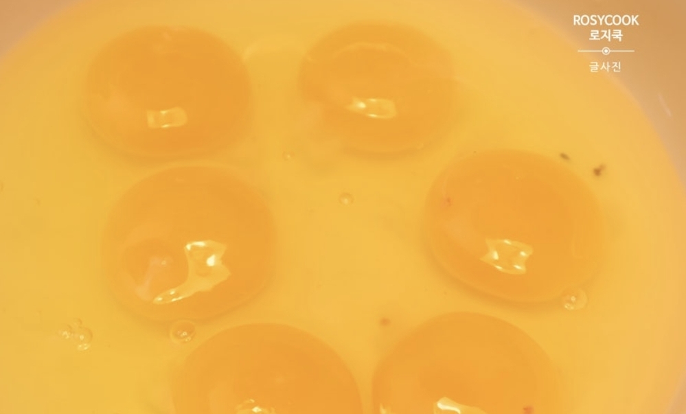 계란지단 (팬에 식용유 두르고 부칩니다. 계란 6알 + 소금 1/4티스푼)