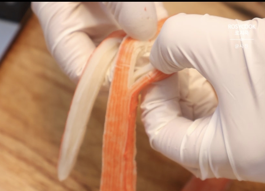 맛살은 찢어서 준비합니다.
