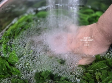 2. 끓는 물에 세척한 깻잎순을 넣고 숨이 살짝 죽을 정도로 데쳐줍니다. 그 후 찬물에 담가줍니다.