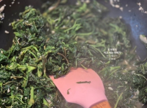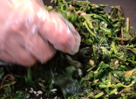 6. 들기름을 넣고 조물조물 무쳐줍니다.