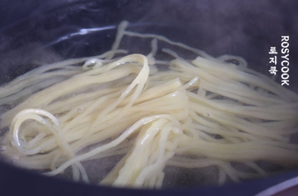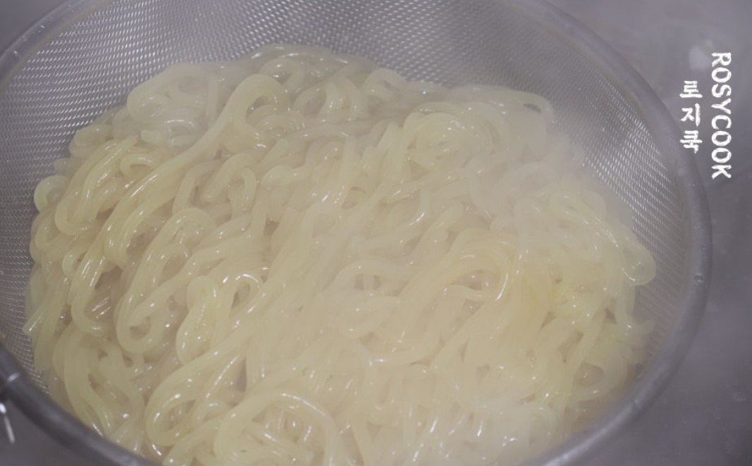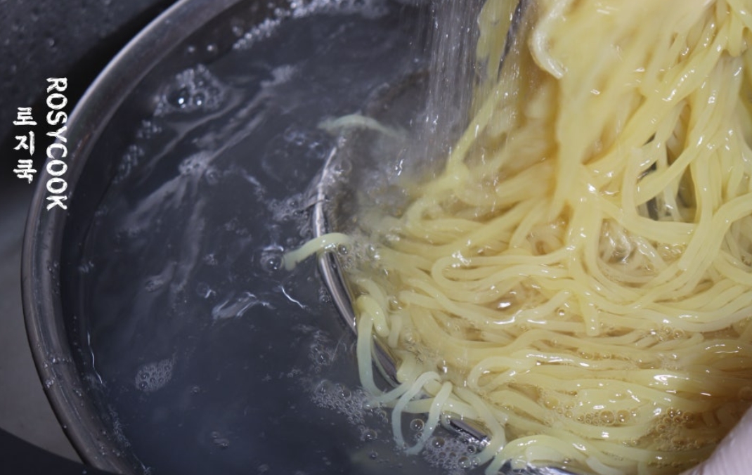 - 끓는 물에 쫄면을 넣고 3~4분간 삶은 뒤, 찬물에 비벼가며 헹궈 전분기를 제거해 주세요.