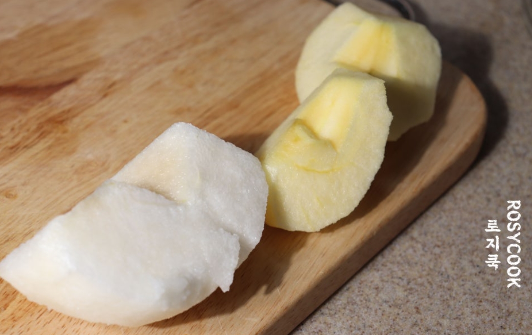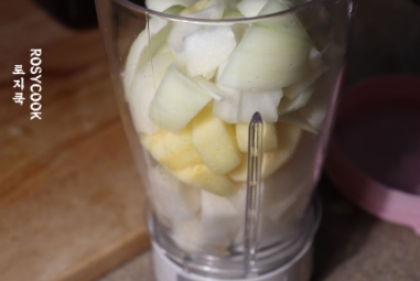배, 사과, 양파는 믹서기에 넣기 좋은 크기로 잘라줍니다.