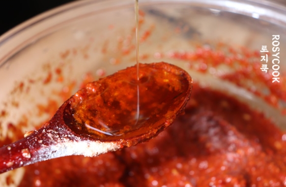 과일은 단맛과 은은한 향을 더해주고, 고춧가루와 식초는 입맛을 확 끌어당기는 매콤새콤함을 살려줘요.