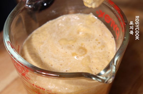 믹서기에 손질한 재료를 넣고 진간장 100ml를 부어 곱게 갈아줍니다. 이때 과일의 즙이 진하게 어우러져 깊은 맛을 냅니다.