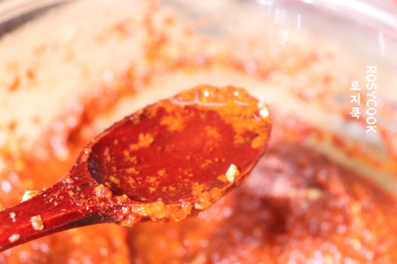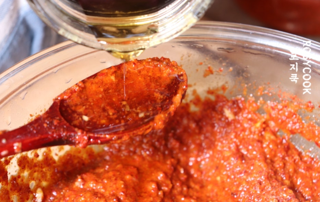 과일은 단맛과 은은한 향을 더해주고, 고춧가루와 식초는 입맛을 확 끌어당기는 매콤새콤함을 살려줘요.
