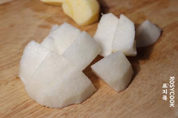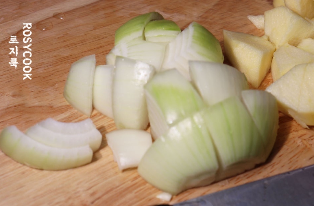 배, 사과, 양파는 믹서기에 넣기 좋은 크기로 잘라줍니다.