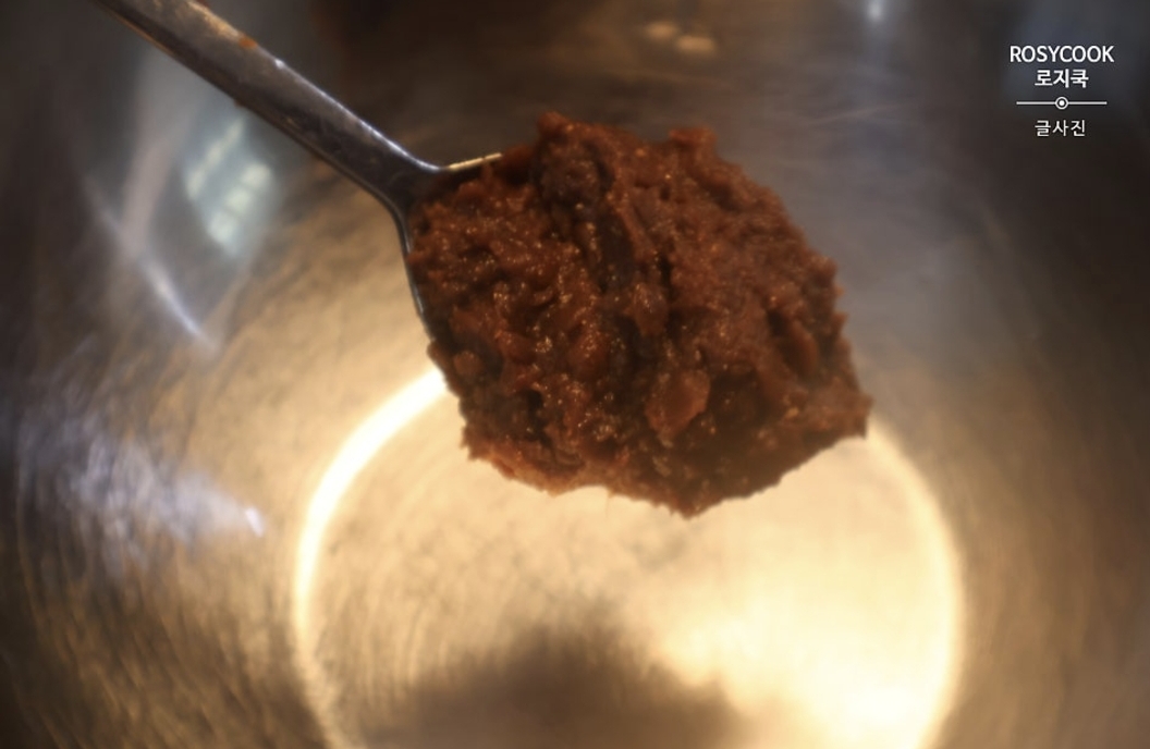 6. 된장 1.5 큰 술과 간 마늘 1 큰 술을 넣어줍니다.