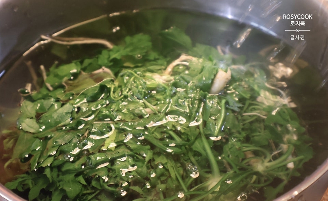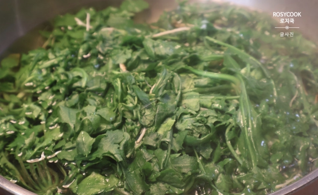 4. 2분 정도 살짝 데쳐줍니다. 데친 냉이는 찬물에 담가둡니다.