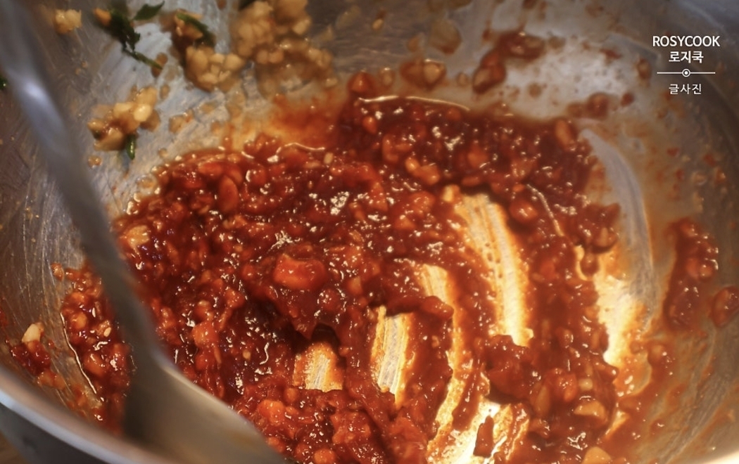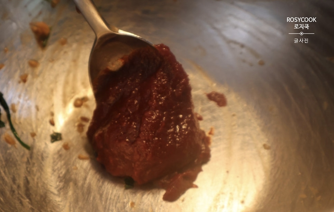 11. 고추장 1 큰 술과 간 마늘 1 큰 술을 넣어줍니다.