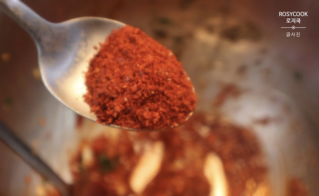 13. 고춧가루 1/2 큰 술을 넣고 잘 섞어줍니다.