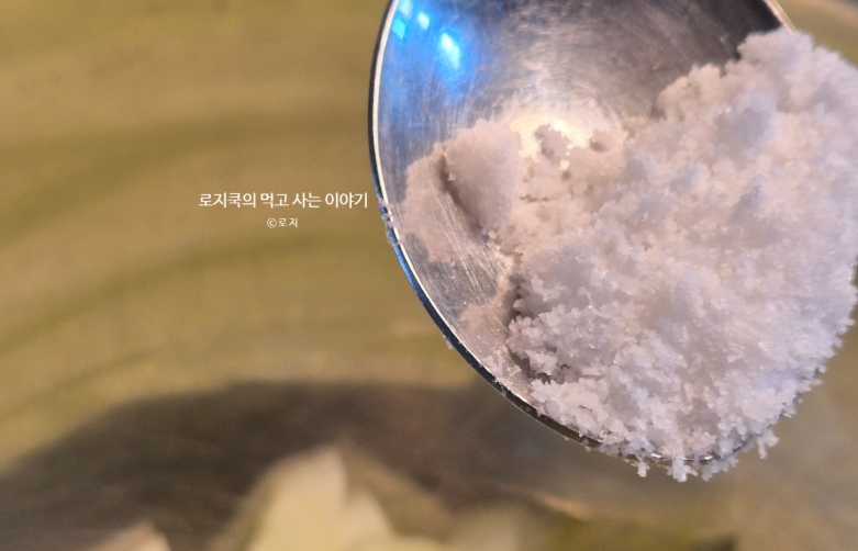 얇게 썬 노각에 굵은소금을 넣고 10~15분간 절여주세요. 절인 뒤 면포로 수분을 꼭 짜내야 아삭한 식감이 살아나요.
